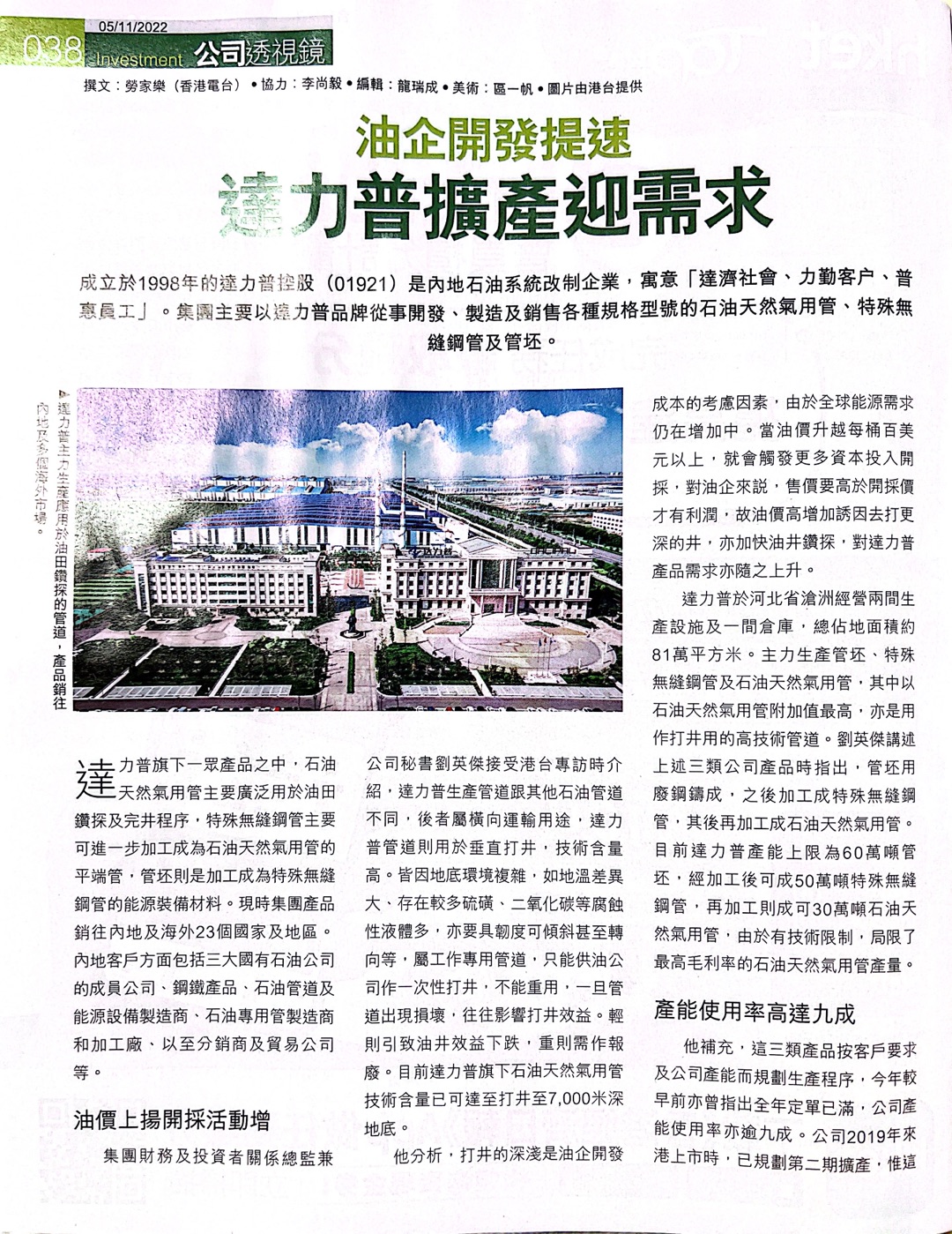 油企开发提速 达力普扩产迎需求 (转载自iMoney 785期)